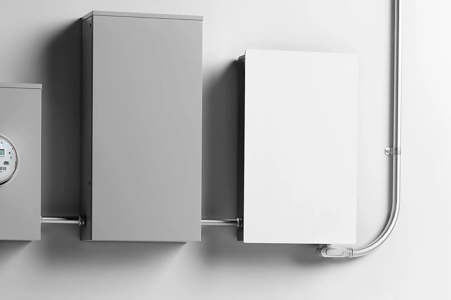 On the DC end of your hybrid solar inverter, it connects to your solar panel array and battery bank. Then, it connects to your house and power grid on the 120V AC end. To be specific, it connects to the power grid through your “smart meter,” explained below.